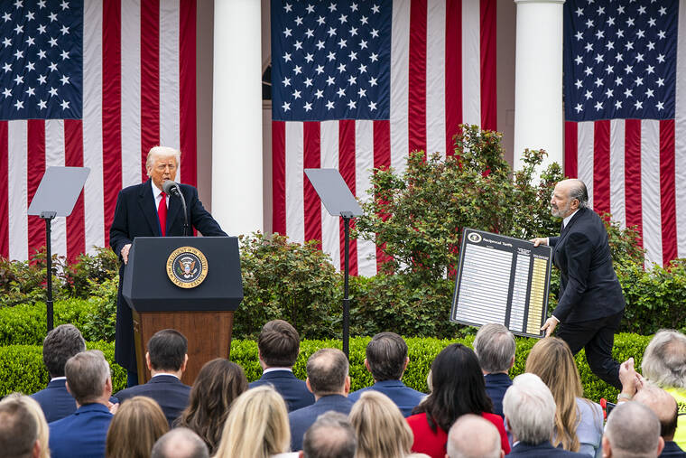 Global leaders, U.S. politicians and others rejected that view, saying Trump’s approach threatened to weaken the global economy and send prices soaring just as much of the world was finally returning to a sense of balance after two years of rapid inflation.