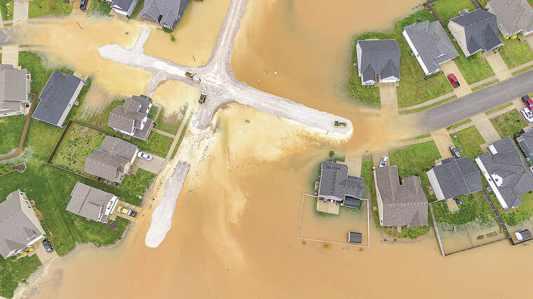 In Louisville, the region’s sewage utility said the sewer system had reached capacity because of heavy rain, and asked customers to refrain from running washing machines and dishwashers.