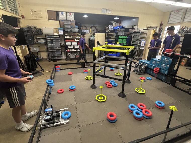 The robot the students are taking to May’s contest, known amongst VEX competitors as Worlds, doesn’t really have a name, but the boys said it could be called Titan 5.0 to represent Waiakea Intermediate’s mascot and the fact that it is the fifth iteration of the students’ agreed-upon design.
