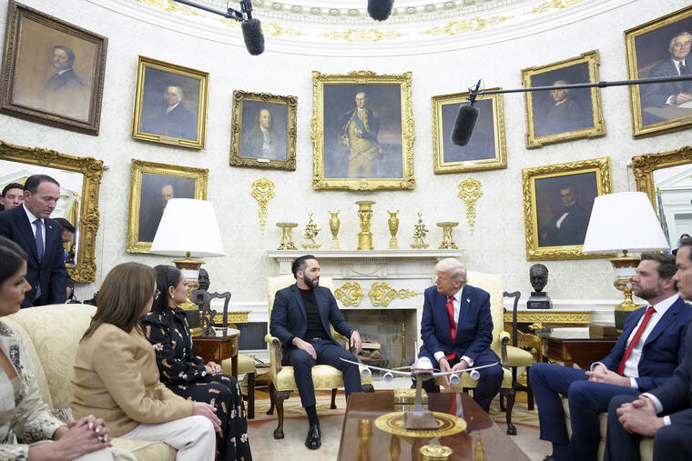 Bukele, who has positioned himself as a key ally to Trump, in part by opening his country’s prisons to deportees, sat next to the president and a group of Cabinet officials who struck a combative tone over the case, which has reached the Supreme Court.