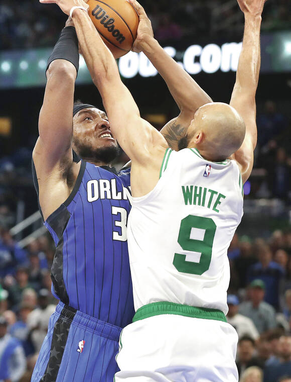 The Celtics were able to maintain that cushion for the first seven minutes of the fourth, getting seven points from Tatum, five from White and a powerful block from Horford to keep Orlando at bay. But the Magic eventually equalized on a 3-pointer by Kentavious Caldwell-Pope and a Carter tip-in, tying the game at 91-91 with 4:18 remaining.