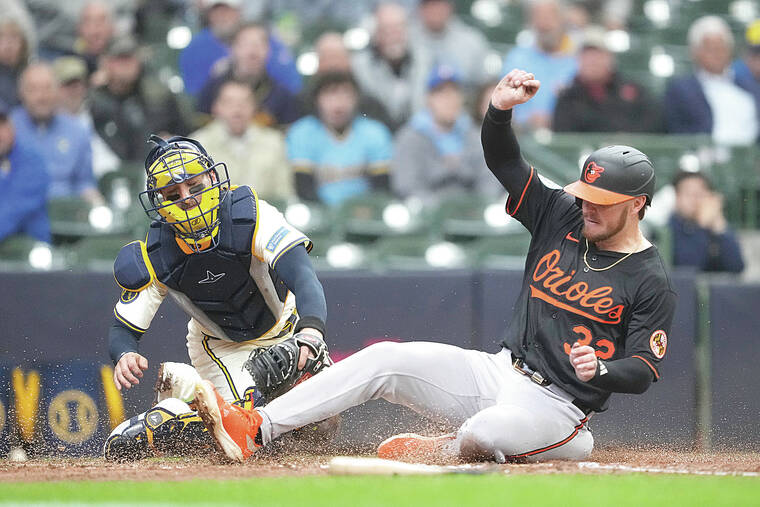 Baltimore squandered several chances for sustained rallies and stranded 11 base runners on the day but came alive in the eighth just enough to get starter Tomoyuki Sugano off the hook for a tough-luck loss. With the Orioles trailing 2-1, Gunnar Henderson led off the frame with a single off Brewers reliever Nick Mears and moved to third on a double by O’Hearn. Cedric Mullins then tied things up with a sacrifice fly to set up a break-through moment for Heston Kjerstad.