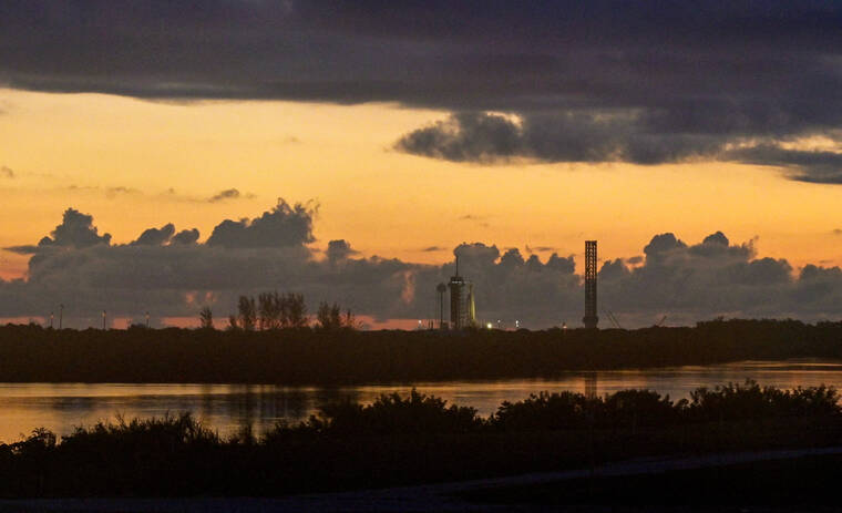 Live video showed the towering spacecraft streaking into the night sky over Florida’s Atlantic coast trailed by a brilliant yellowish plume of fiery exhaust.