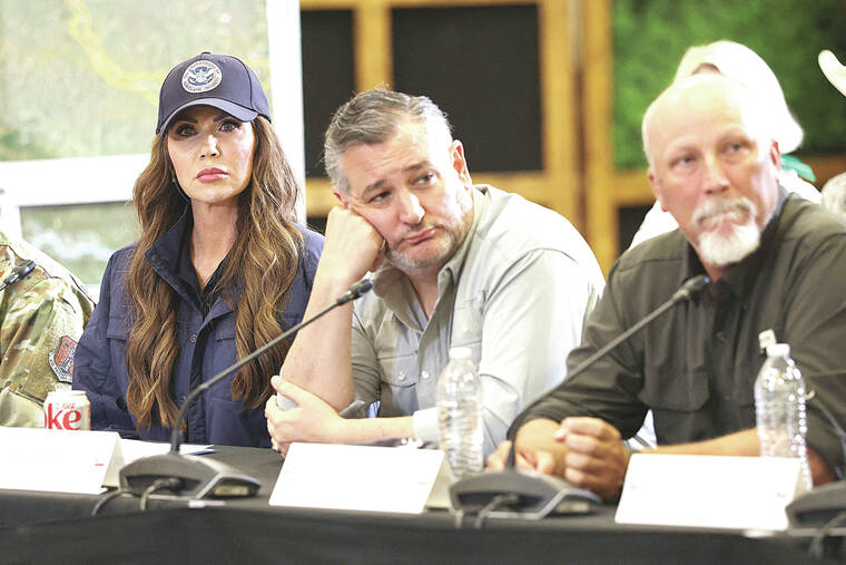 In an appearance on NBC’s “Meet the Press,” Noem denied that a new policy requiring her personal approval for contracts larger than $100,000 had left Federal Emergency Management Agency call centers understaffed for days after floodwaters swept through Texas’ Hill Country on July 4 and 5. The New York Times reported that on July 6 and 7, thousands of calls to the agency went unanswered because hundreds of contractors had been fired when their contracts lapsed on July 5.
