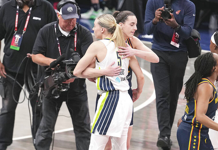 Less than two minutes into the game, Clark stole a cross-court pass from Bueckers and raced the other way for a fast-break layup. She intercepted two more Bueckers passes as Indiana turned Dallas’ 18 turnovers into 23 points. Not to be deterred, Bueckers responded to Clark’s first-quarter steal with a deep 3-pointer, as if to say Clark wasn’t the only one with range. Bueckers followed that up with a sweep-through move on Fever rookie Mikayla Timpson near the baseline that should’ve been called a foul. Even without the whistle, Bueckers was able to knock down the 17-foot jumper through contact.