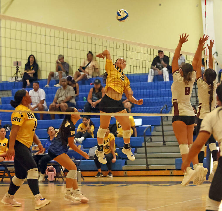 “Our team puts ourselves in that mentality that every single game, we’re either playing against Kamehameha or Waiakea,” she said. “Making sure that we do the basics, that we’re staying disciplined on every pass, every set and every hit. We make sure that our mentality is game-ready for Kamehameha and Waiakea. These girls have been working hard, and I just can’t wait to play Waiakea and Kamehameha next week.”