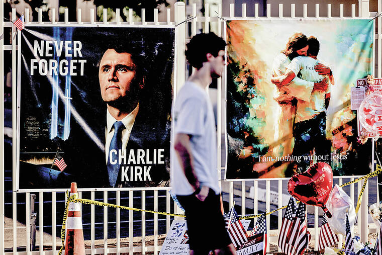 She placed a sign honoring Kirk among the wilting flowers, faded notes and scribbled prayers of a tribute that has grown to the length of a city block in the 10 days since Kirk was fatally shot while speaking at a Utah college.