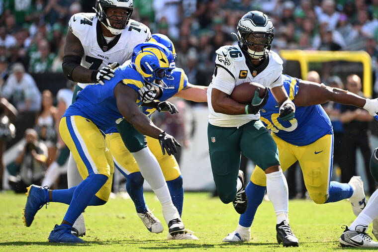 A.J. Brown came alive in the second half — and so did the Eagles offense. Brown did not have a catch in the first half. He had six catches for 109 yards and a touchdown after halftime. On the Eagles’ critical fourth-quarter drive, Brown had two third-and-10 conversions with yards after catch from stiff-arming Rams defenders. Brown’s lack of involvement in the offense has been a bubbling storyline in Philadelphia. At halftime, it looked like it would be another week of wondering why Brown wasn’t involved. In the second half, the Eagles showed that good things happen when they throw Brown the ball. He was the key to the comeback. — Zach Berman, Eagles beat writer
