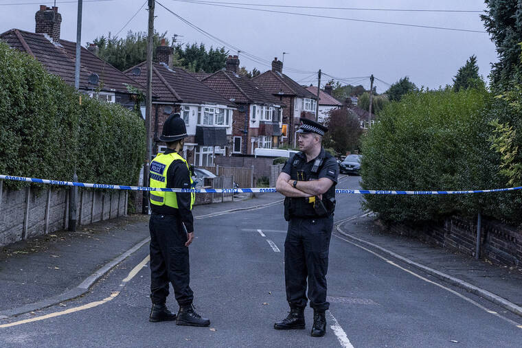 LONDON — An attacker rammed a car into people outside a synagogue in Manchester, England, then went on a stabbing spree Thursday, killing two people in what police called an act of terrorism on Yom Kippur, the holiest day of the Jewish calendar.