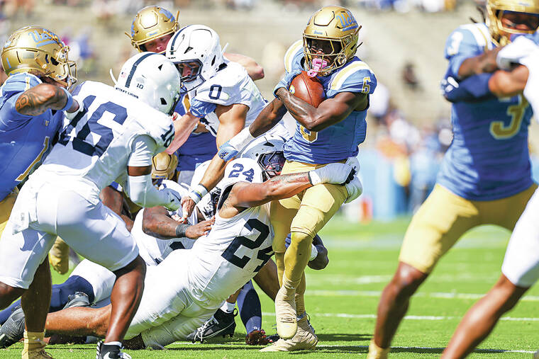 Iamaleava went 17 of 24 for 166 yards with two touchdowns and ran 16 times for 128 yards and three more scores. Kwazi Gilmer recorded team highs of five catches for 79 yards and a touchdown for the Bruins (1-4, 1-1 Big Ten).