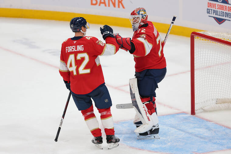 Florida also got goals from A.J. Greer and Carter Verhaeghe. Mackie Samoskevich added two assists.