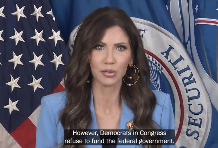 In a statement, Tricia McLaughlin, the assistant secretary of Homeland Security, repeated Noem’s video message, adding that it was “unfortunate our workforce has been put in this position due to political gamesmanship.”