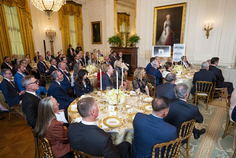 More than three dozen corporate executives and wealthy businesspeople attended the dinner, where Trump expressed gratitude for their opening their checkbooks for his long-desired state ballroom. Representatives from companies including Amazon, Apple, Google, Microsoft and Lockheed Martin were in attendance.