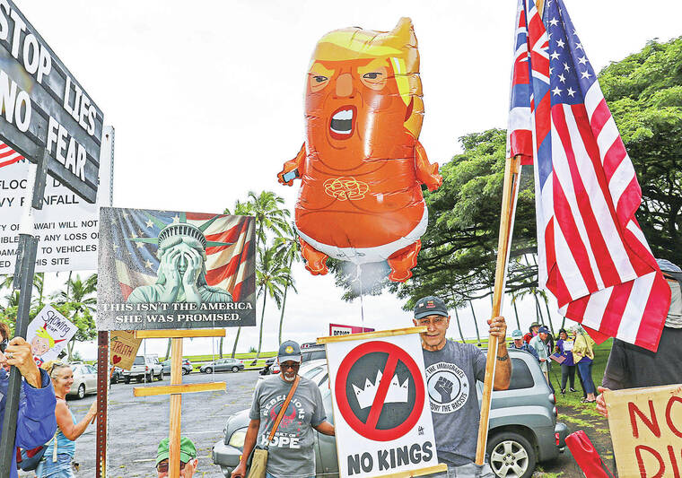 Collectively, the daylong mass demonstration against the Trump administration on Saturday, held in thousands of locations, condemned a president that the protesters view as acting like a monarch.