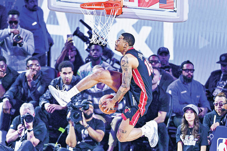 Johnson delivered the defining moment of his short, two-season NBA career so far when he won the Slam Dunk competition over rookie Carter Bryant of the San Antonio Spurs to close out Saturday’s prelude of events to Sunday’s All-Star Game.