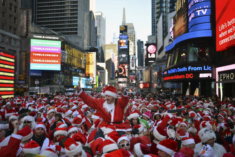 Anyone wearing red, or perhaps a pair of antlers, can join the festivities, but the bar crawl typically has an official starting point and route. Those details and “secret info” are available to participants who buy a “Santa Badge,” the event’s website says.
